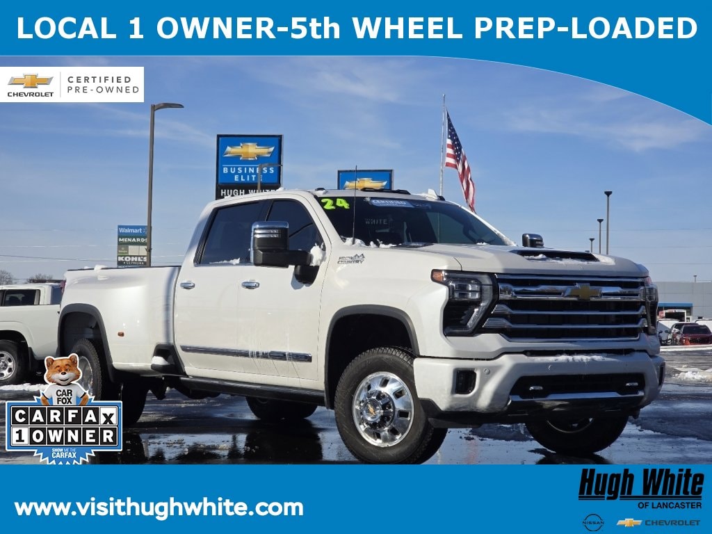 CARFAX VERIFIED 1-OWNER. Free CARFAX report! DESIRABLE FEATURES: * LOCAL-TRADE-IN *, * CARFAX 1-OWNER *, * LOCAL 1-OWNER *, * BOUGHT & SERVICED HERE *, * CLEAN CARFAX *, MOONROOF, TRAILER BRAKE CONTROLS, SPRAY-IN BEDLINER, APPLE CARPLAY, SOLD HERE NEW, LEATHER, DUALLY, TECH PKG, DIESEL, 4X4, ANDROID AUTO, HEATED-SEATS, PARK ASSIST, COOLED SEATS, WIRELESS PHONE CHARGING, CROSS-TRAFFIC ALERTS, TOW PKG, HEATED-STEERING WHEEL, HEATED-REAR SEATS, BOSE AUDIO, LANE-DEPARTURE WARNING, REMOTE START, MULTI-ZONE AC, BLIND-SPOT MONITORING, RUNNING-BOARDS, BACKUP CAMERA, BLUETOOTH, ALLOY-WHEELS, FOG LAMPS, BACKUP-SENSORS, 5th WHEEL TOW PKG, SiriusXM, Remote entry. Your GM Certified 2024 Chevrolet Silverado 3500HD 4WD Crew Cab Long Bed High Country vehicle is perfect for daily work or weekend road trips to our neighboring communities of Lancaster, Columbus, Newark, Pickerington, and Logan.GM CERTIFIED PRE-OWNED BENEFITS: