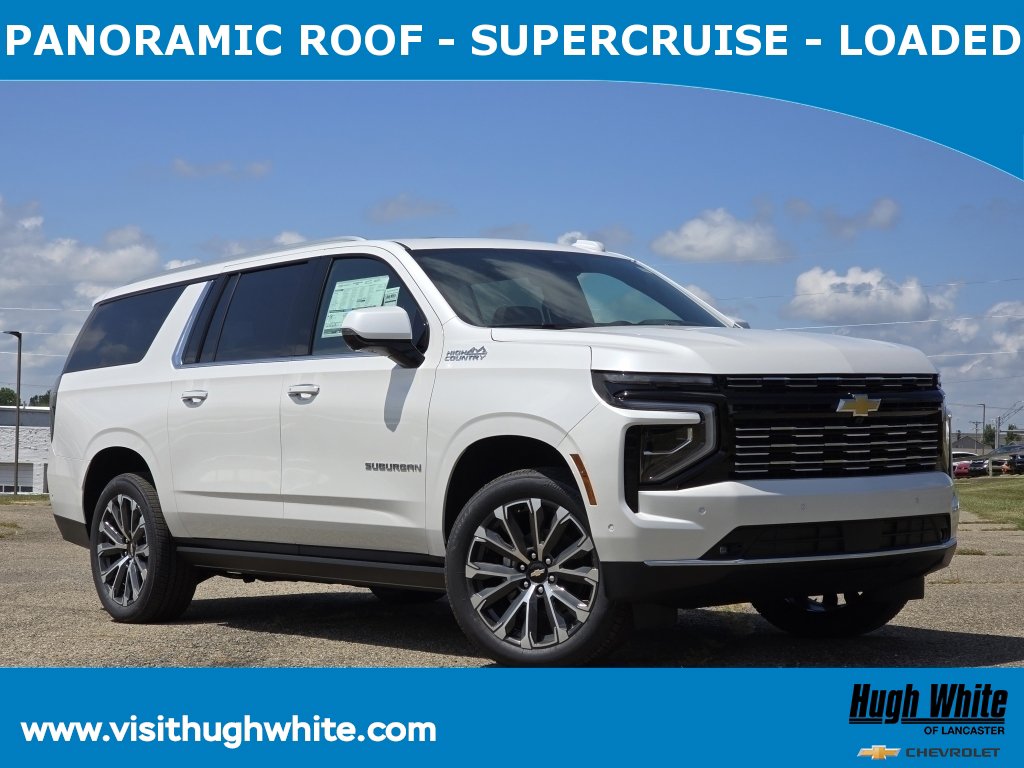 BRAND NEW 2025 MODEL YEAR! DESIRABLE FEATURES: APPLE CARPLAY, LEATHER, PANOROOF, TRAILER BRAKE CONTROLS, SUPERCRUISE, NAVIGATION, MOONROOF, COOLED SEATS, WIRELESS PHONE CHARGING, 4X4, ANDROID AUTO, HEADS-UP DISPLAY, HEATED-SEATS, HEATED-REAR SEATS, 3RD ROW SEAT, REMOTE START, HEATED-STEERING WHEEL, LANE-DEPARTURE WARNING, BLUETOOTH, BLIND-SPOT MONITORING, HANDS-FREE LIFTGATE, RUNNING-BOARDS, REAR HEAT/AC, BACKUP CAMERA, MULTI-ZONE AC, POWER REAR LIFTGATE, ALLOY-WHEELS, FOG LAMPS, BACKUP-SENSORS, 2nd ROW CAPTAINS, SiriusXM, Remote entry. Your NEW 2025 Chevrolet Suburban 4WD High Country SUV is perfect for daily work or weekend road trips around Fairfield County, OH.NEW CHEVROLET BENEFITS: