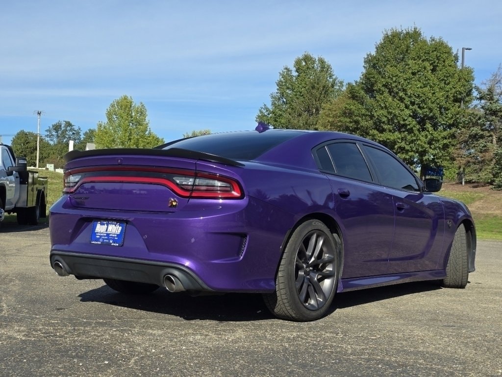 This rwd 2023 Dodge Charger Scat Pack has 28,305 miles and a bold Plum Crazy Pearlcoat exterior with a comfortable Black Interior.