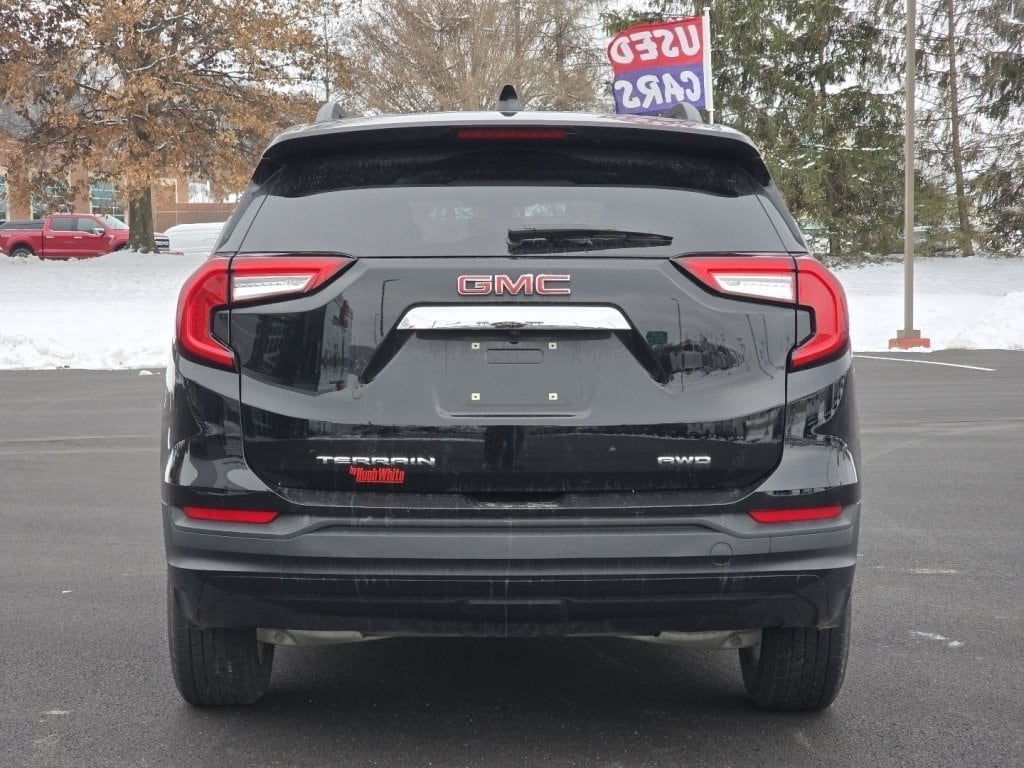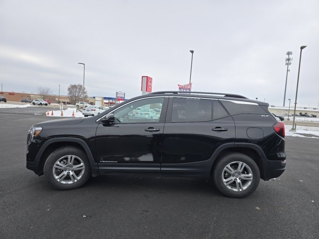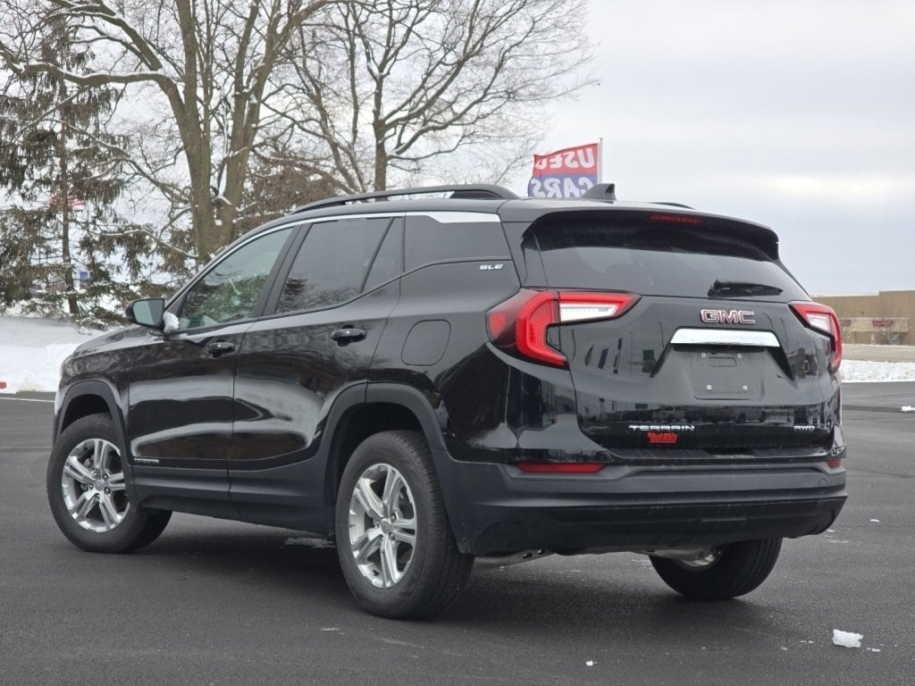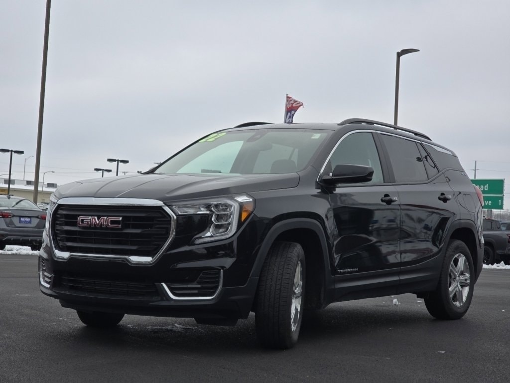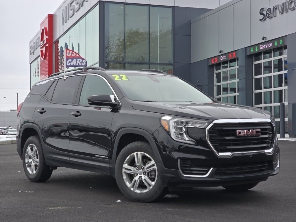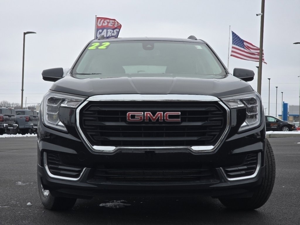 This awd 2022 GMC Terrain AWD SLE has 76,302 miles and a bold Black exterior with a comfortable Jet Black Interior.