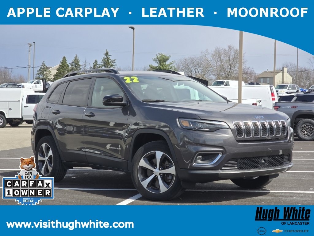 CARFAX VERIFIED 1-OWNER. Free CARFAX report! DESIRABLE FEATURES: LEATHER, MOONROOF, APPLE CARPLAY, HEATED-SEATS, ANDROID AUTO, HEATED-STEERING WHEEL, HANDS-FREE LIFTGATE, BACKUP CAMERA, MULTI-ZONE AC, BLUETOOTH, FOG LAMPS, ALLOY-WHEELS, POWER REAR LIFTGATE, WiFi Hotspot, SiriusXM, usb, Remote entry. Your 2022 Jeep Cherokee Limited 4x4 is perfect for daily work or weekend road trips to our neighboring communities of Lancaster, Columbus, Newark, Pickerington, and Logan.